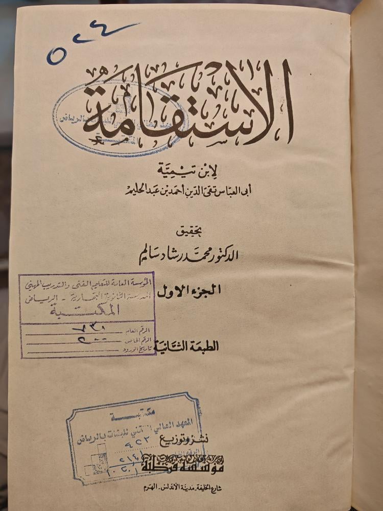| مكتبة السنة - القاهرة | الاستقامة | الثانية | 1409ه | محمد رشاد سالم | 2 |
