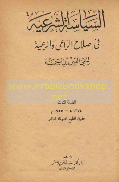 | دار الكتاب العربي - القاهرة | السياسة الشرعية في إصلاح الراعي والرعية | الثالثة | 1955-1374 | 1 | 170 |