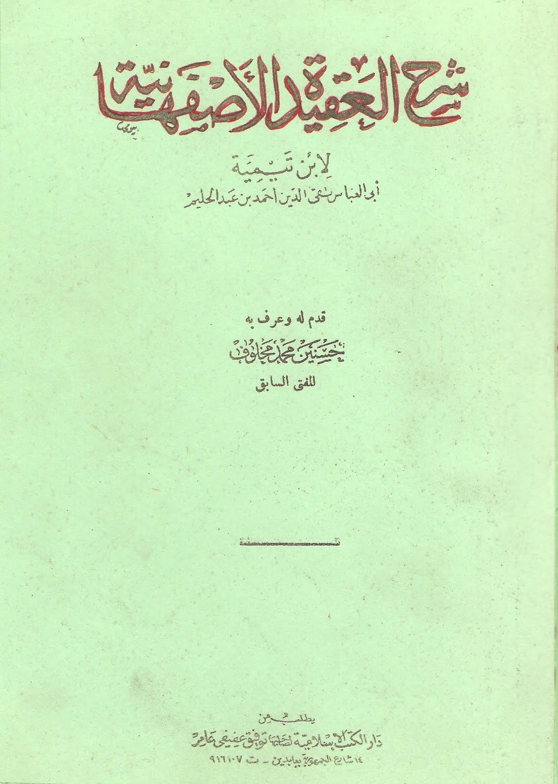 | دار الكتب الإسلامية - القاهرة | شرح العقيدة الأصفهانية | الأولى | 1966م | قدم له وعرف به: حسنين محمد مخلوف | 1 | 173 |